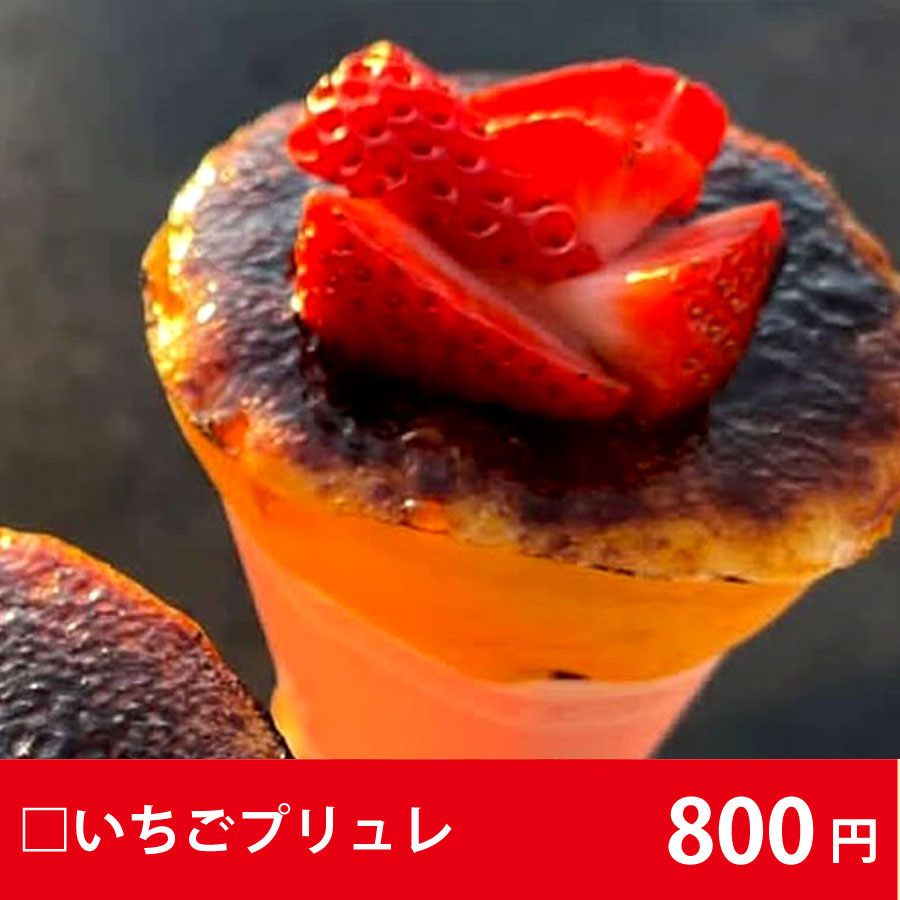 カスタードの上部を焦がしたブリュレ、季節のいちごをトッピング.